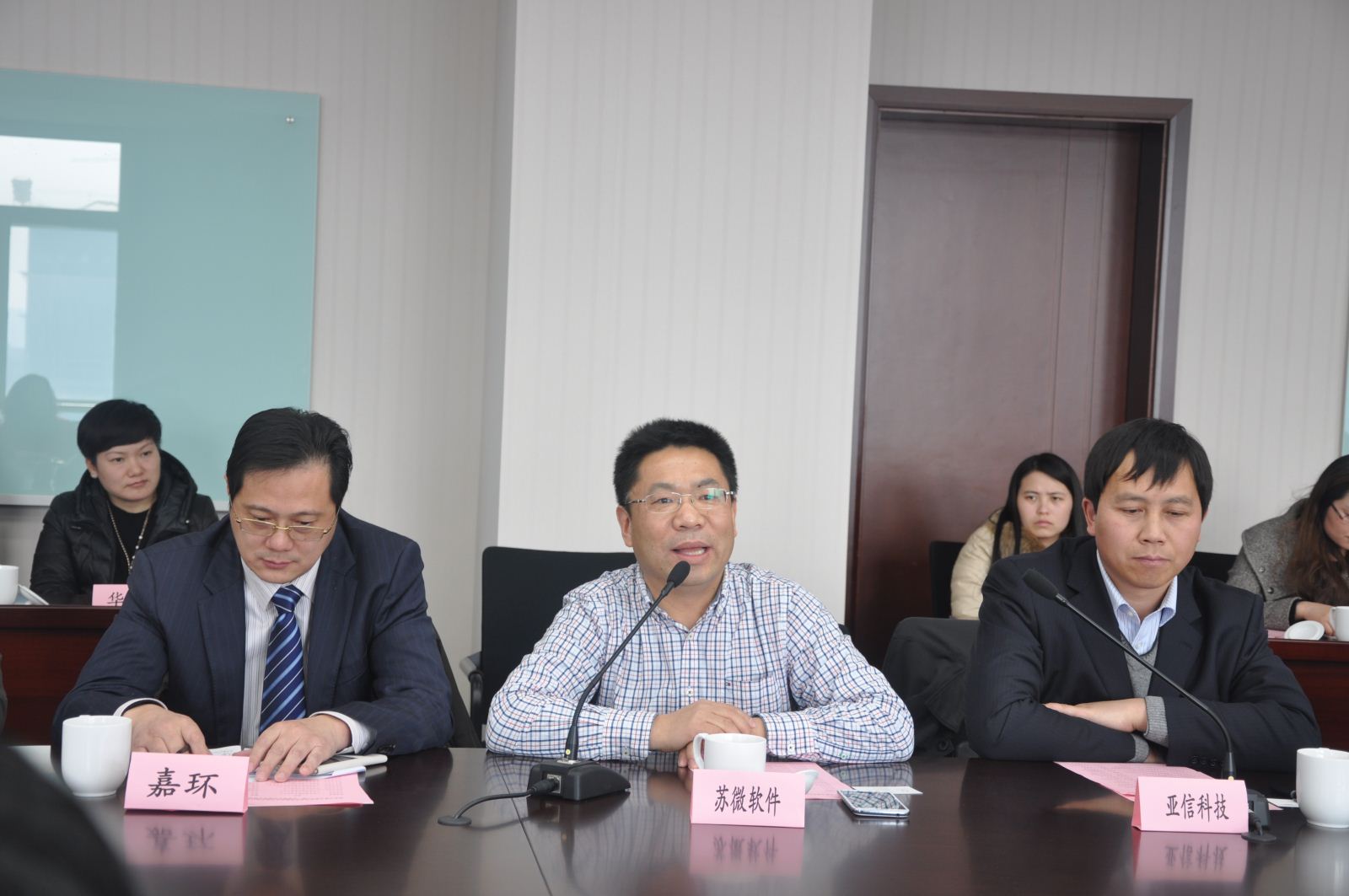 本次參加座談會的領(lǐng)導(dǎo)有南京市商務(wù)局汪振和局長、南京市商務(wù)局方芳副局長、南京市商務(wù)局服務(wù)貿(mào)易(服務(wù)外包)處唐蘇蘭處長、南京國際服務(wù)外包企業(yè)協(xié)會長代表?xiàng)罱芟壬⒛暇﹪H服務(wù)外包企業(yè)協(xié)會仇少明常務(wù)副會長。